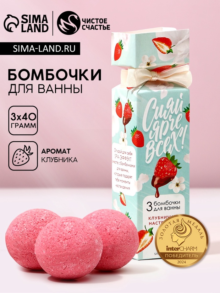 Бомбочки для ванны «Сияй ярче всех!», 3×40 г, Чистое счастье