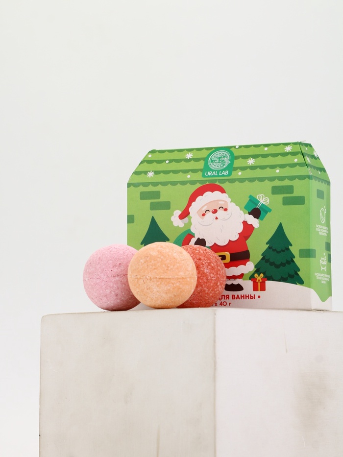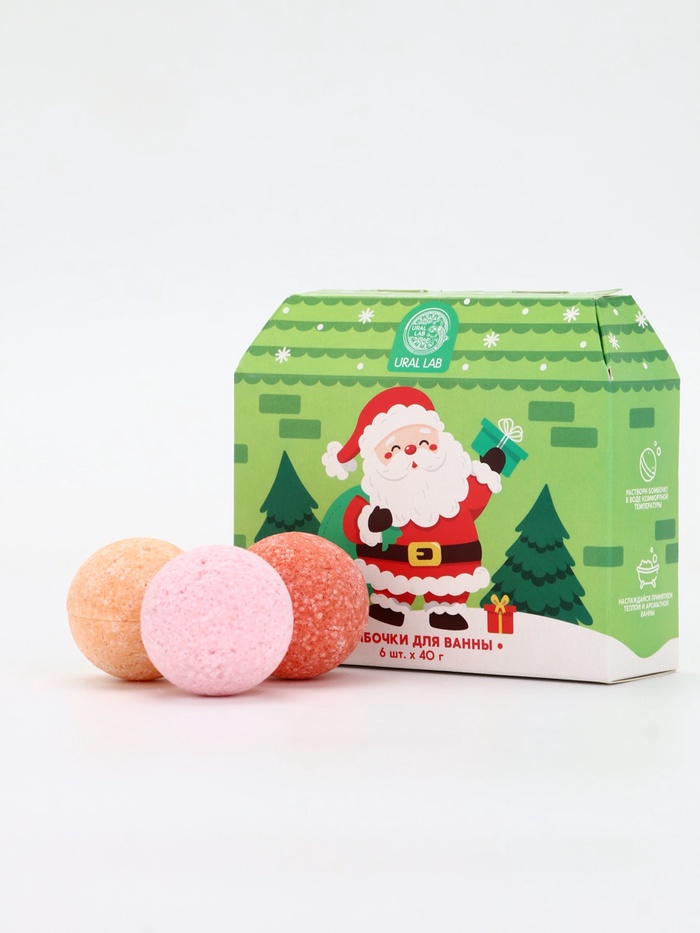 Бомбочки для ванны в домике «Дед Мороз», набор 6 шт. × 40 г, URAL LAB