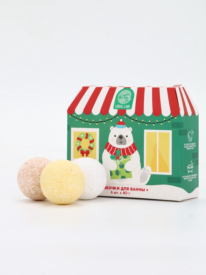 Бомбочки для ванны в домике «Медведь», набор 6 шт. × 40 г, URAL LAB