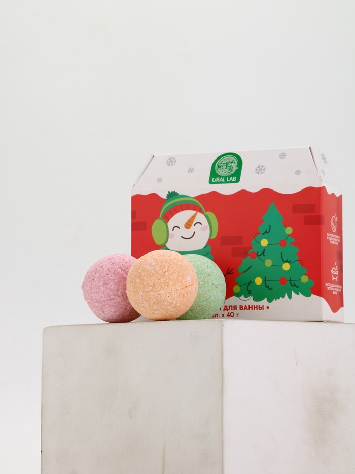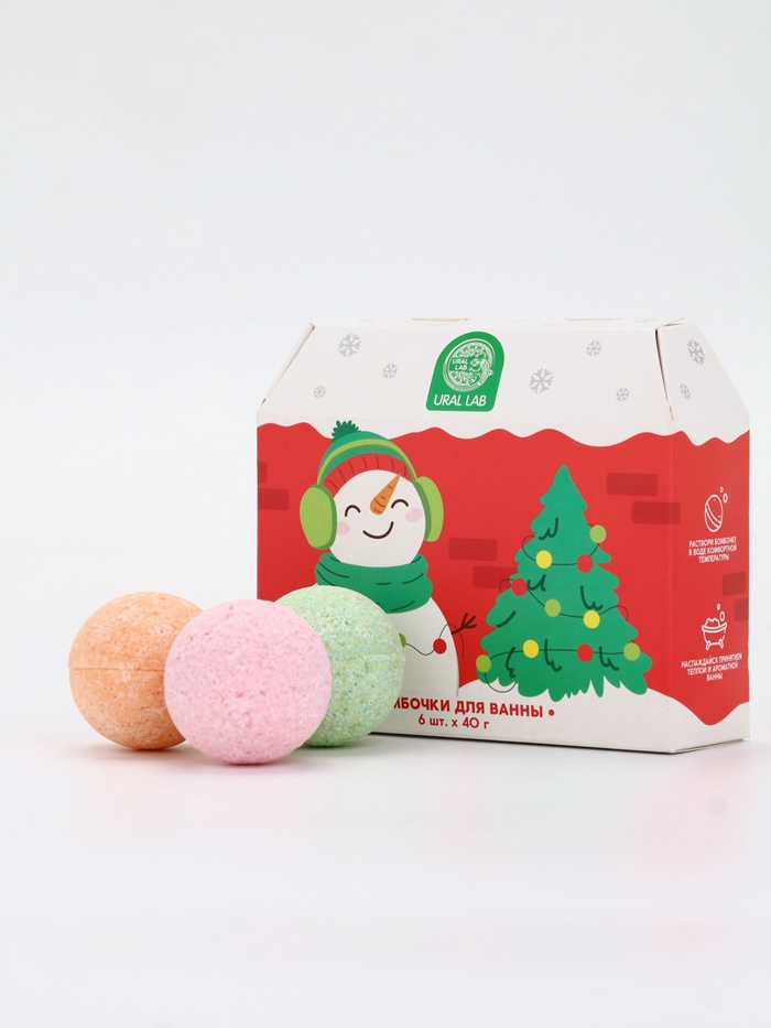 Бомбочки для ванны в домике «Снеговик», набор 6 шт. × 40 г, URAL LAB