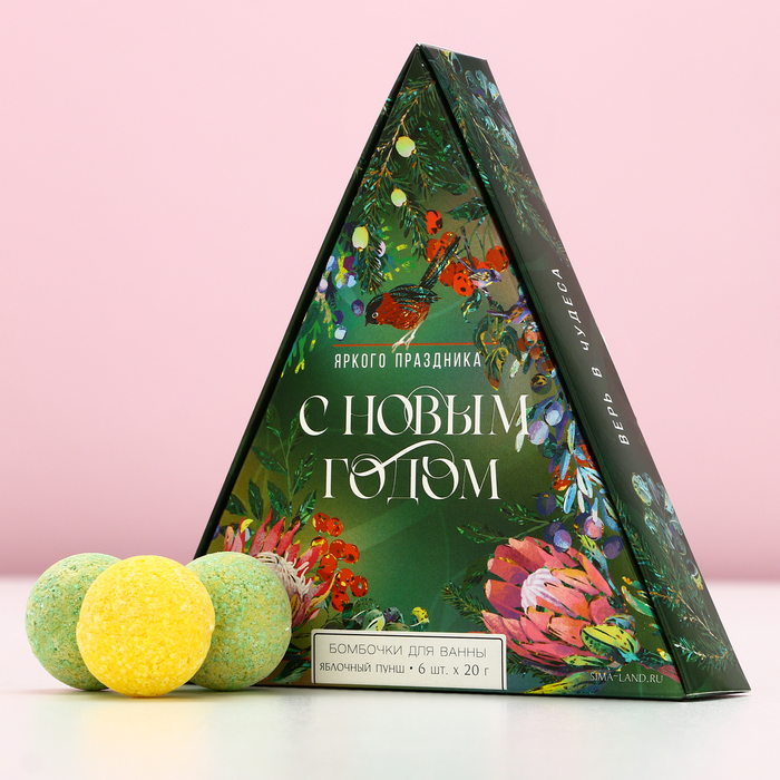 Бомбочки для ванны «Яркого праздника», 6×20 г, аромат яблочный пунш, Чистое счастье