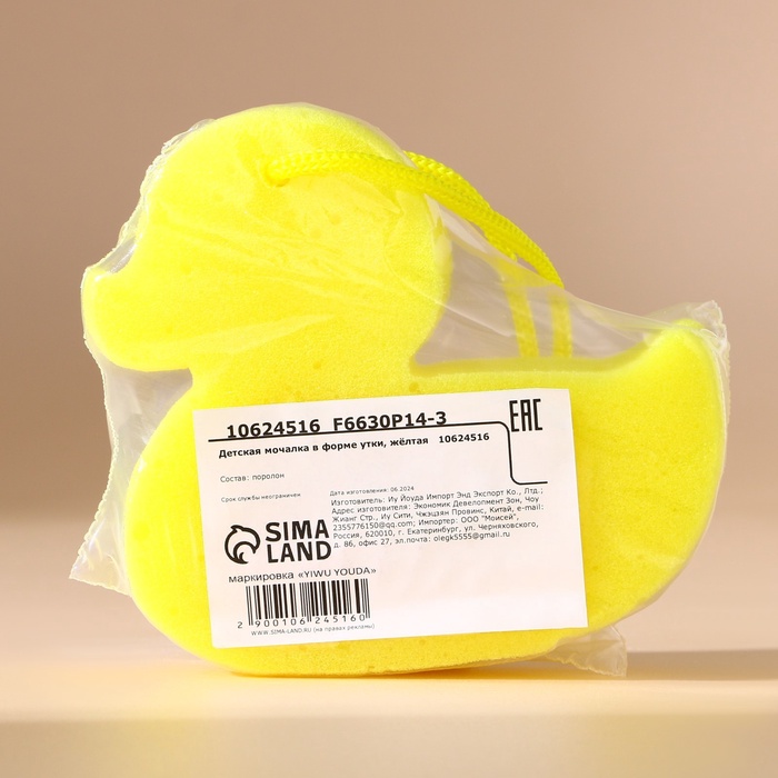 Детская мочалка для тела «Утёнок», Чистое счастье