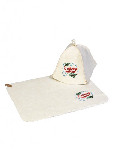 Банный «С лёгким паром!»: шапка и коврик — готовый комплект для парной. Два предмета из шерсти и полиэфира обеспечивают комфорт во время банных процедур.
