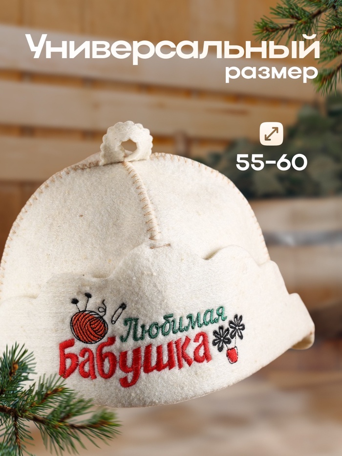 Шапка для бани и сауны «Любимая бабушка» из 100% овчины — фигурная форма и вышивка добавляют элемент элегантности и уюта. Светлые оттенки делают её привлекательной и стильной. Шапка идеально подходит женщинам, ценящим комфорт и тепло. Универсальный размер (55-57) обеспечивает оптимальную посадку для безопасности и защиты.