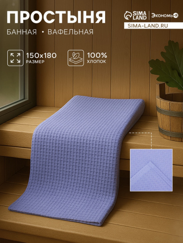 Простыня вафельная для бани «Экономь и Я», 150×180 см, цвет сиреневый