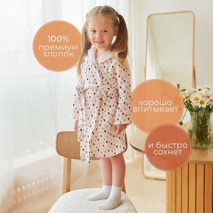 Халат детский муслиновый LoveLife «Сердечки» (6 лет, рост 116-122 см) 100% хлопок, 235 г/м²