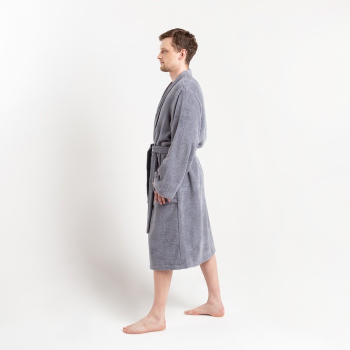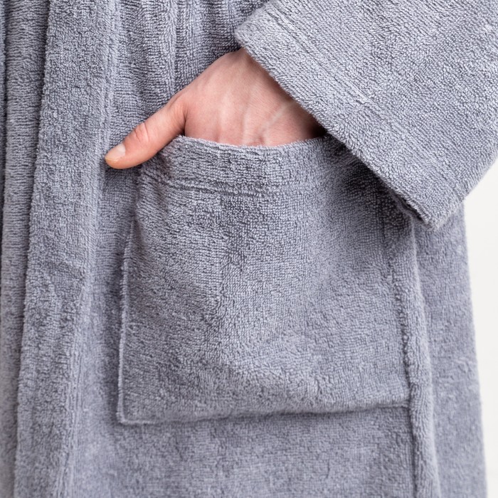 Халат махровый Экономь и Я, мужской размер 56-58 цвет серый, 100% хлопок с AIRO, 320 г/м²