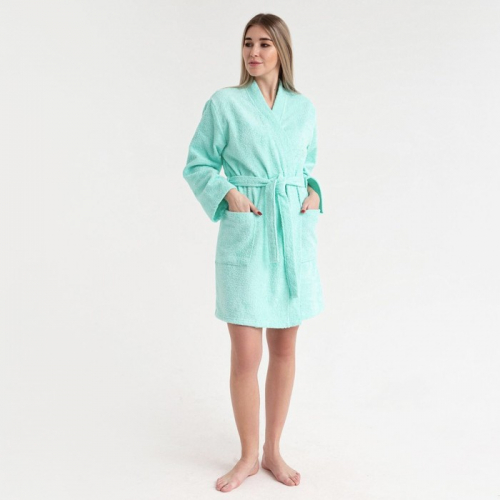 Халат махровый Экономь и Я женский, размер 42-44 цвет нежно-бирюзовый, 100% хлопок, 320 гр/м2