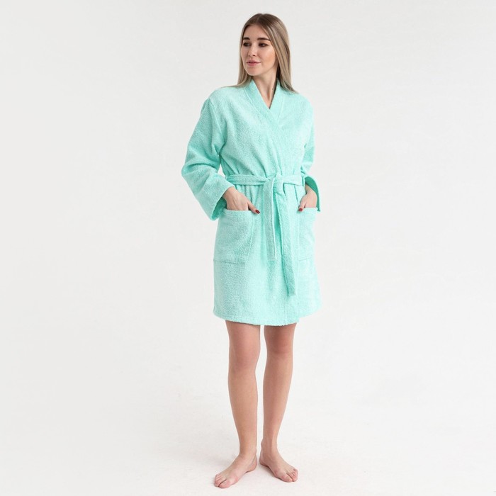 Халат махровый Экономь и Я женский, размер 46-48 цвет нежно-бирюзовый, 100% хлопок, 320 г/м²