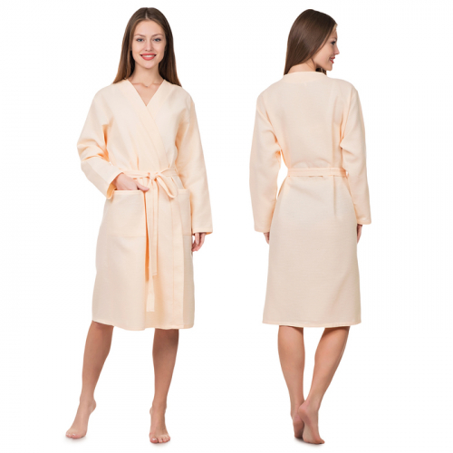 Халат вафельный запашной женский, размер 50, хлопок 100%, персиковый