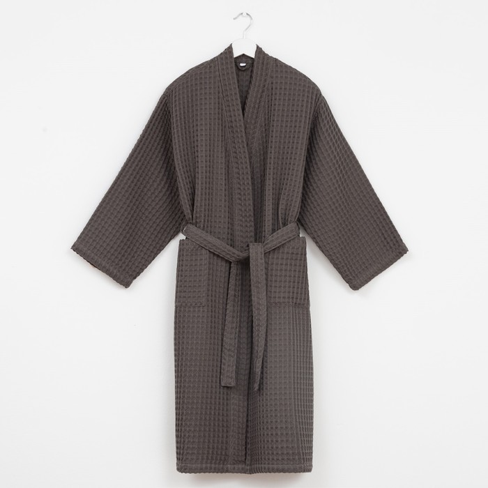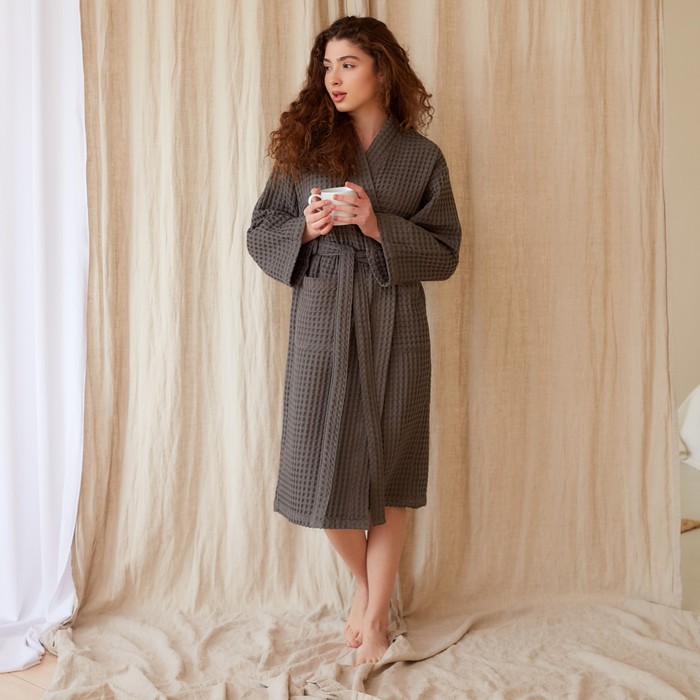 Халат вафельный женский удлинённый Этель «Boho» размер 50-52, цвет светло-серый, 100% хлопок, 290 г/м²