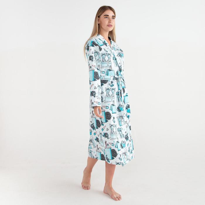 Халат женский удлинённый Этель «Mint mood», размер 46-48, вафля 200 г/м², хлопок