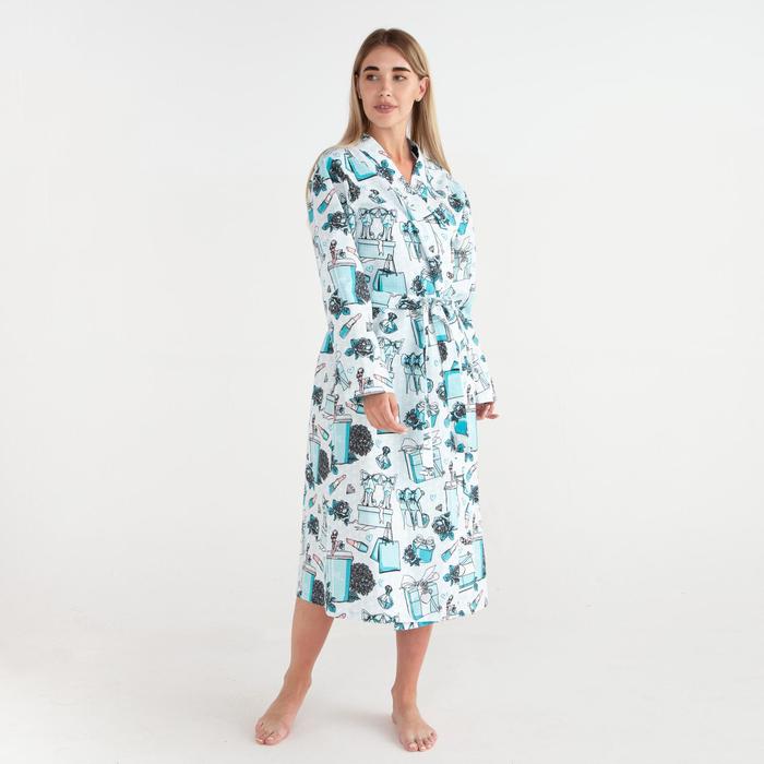 Халат женский удлинённый Этель «Mint mood», размер 50-52, вафля 200 г/м², хлопок