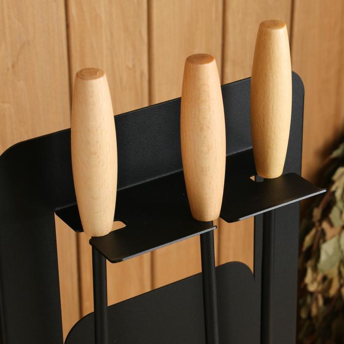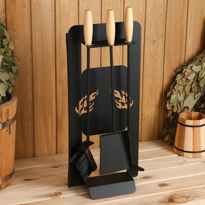 Каминный набор «КН-0-1», 3 предмета: щётка, кочерга, совок, на стойке