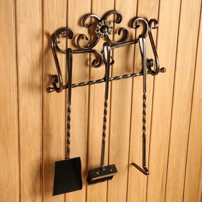 Каминный набор «КН-6-5», 3 предмета: кочерга, совок, метёлка, настенный