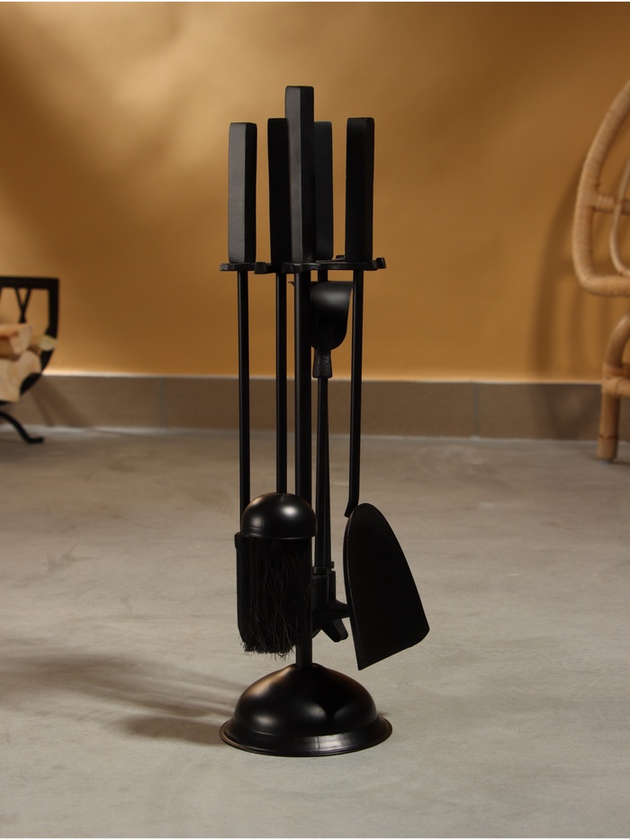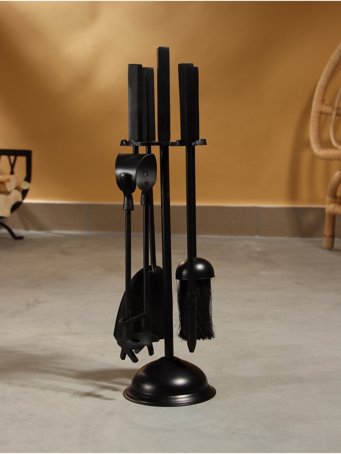 Каминный набор «Пламя», 4 предмета, 13×13×48 см, сталь