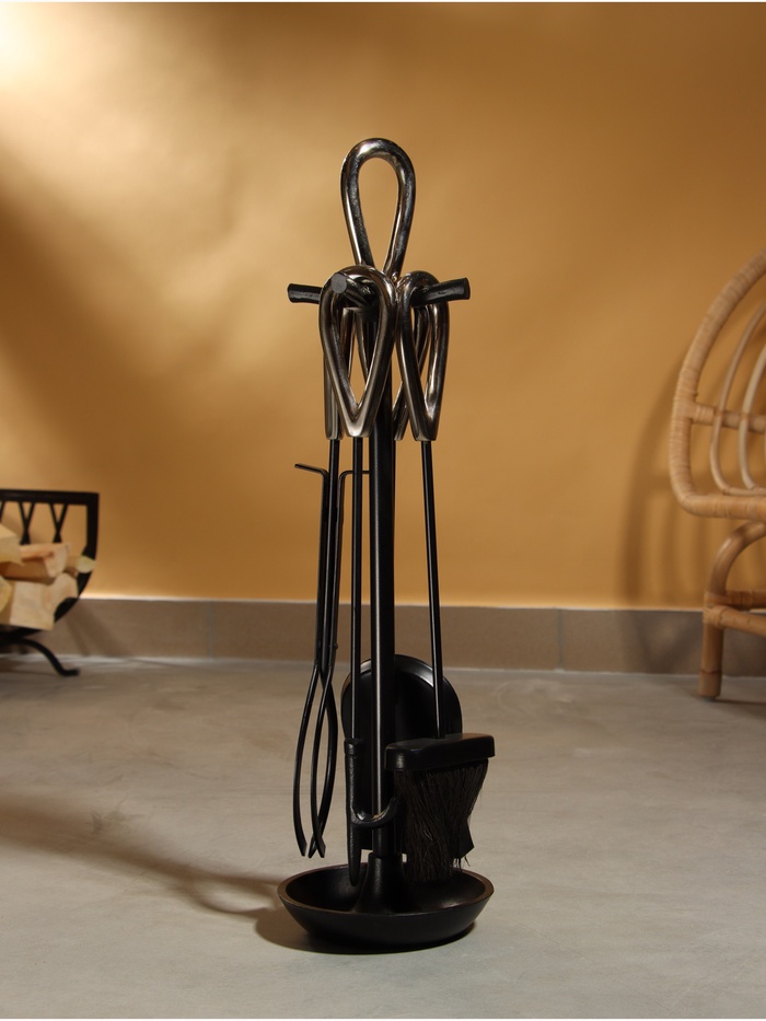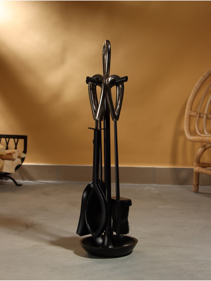 Каминный набор «Уголёк», 4 предмета, 17×17×63 см, сталь