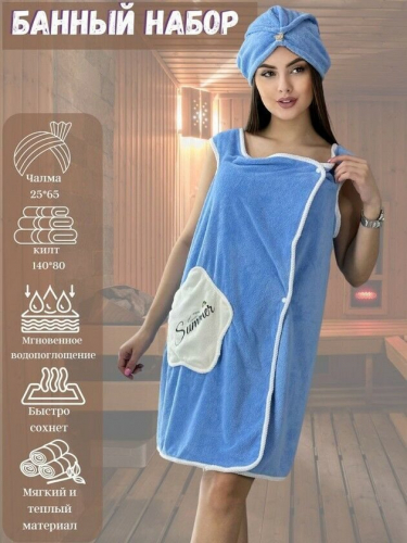 Килт мужской с вышивкой "BIG BOSS"-ГОЛУБОЙ микрофибра