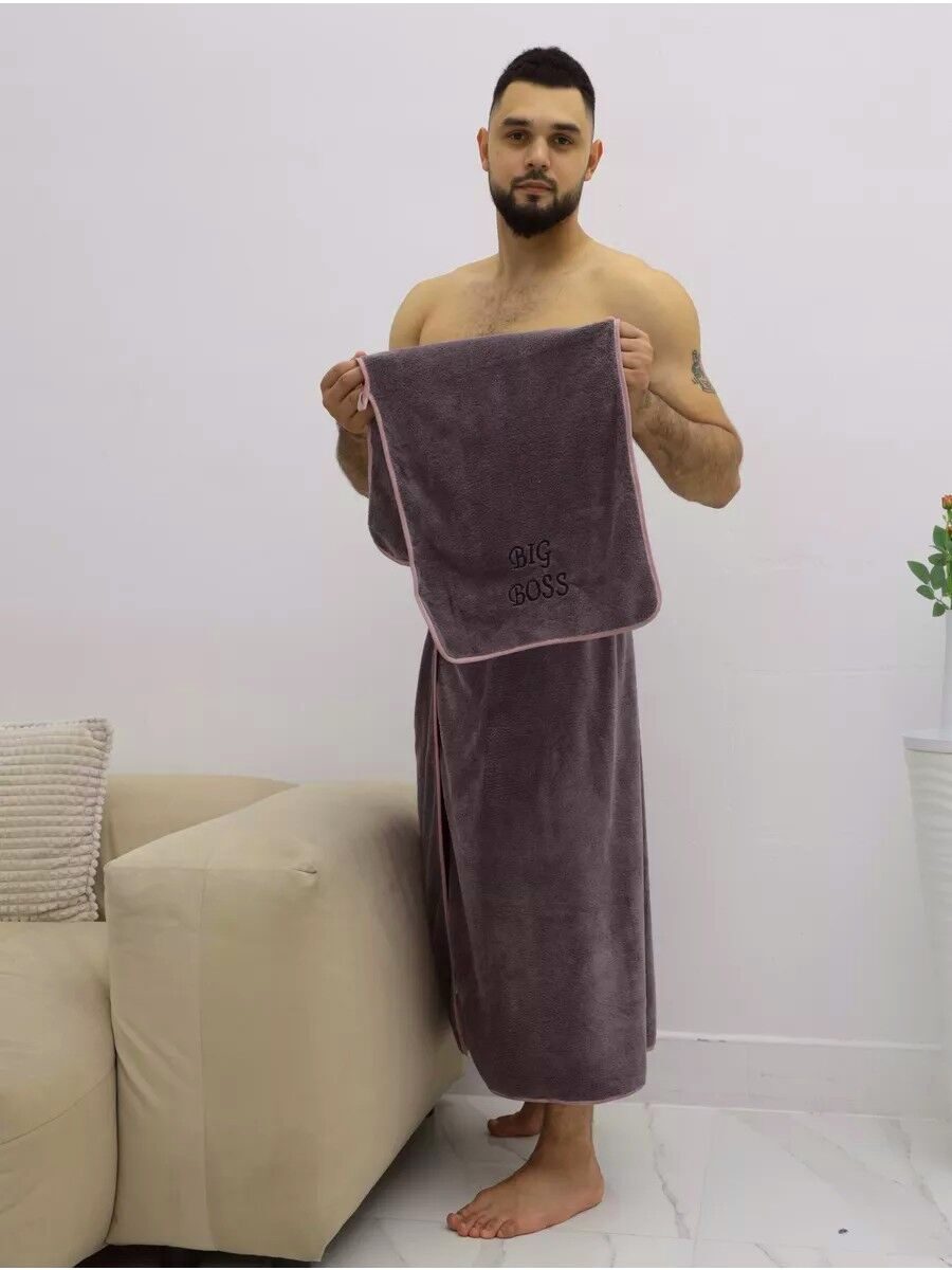 Комплект мужской с вышивкой "BIG BOSS"-DANDY PLUM 2 пр. (килт+полотенце) микрофибра
