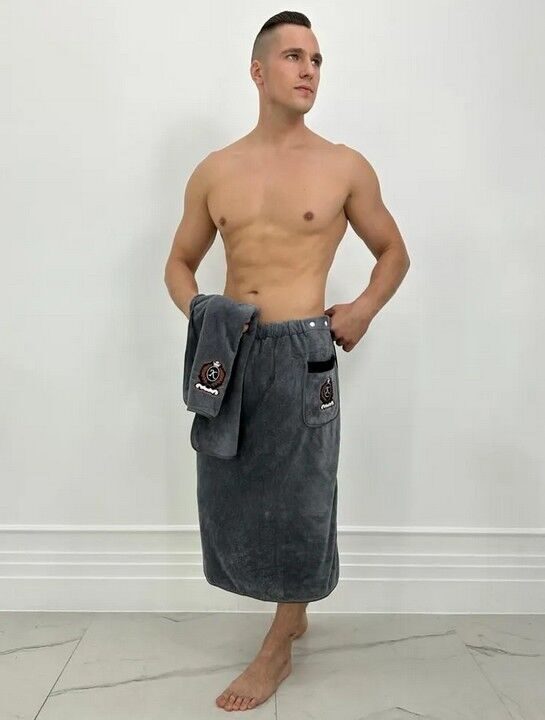Комплект мужской с вышивкой "КОРОЛЬ БАНИ"-СЕРЫЙ 2 пр. (килт+полотенце) микрофибра