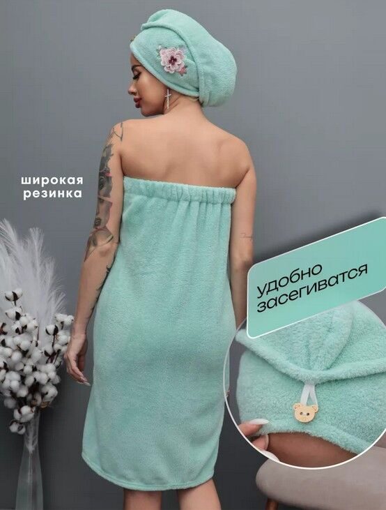Комплект женский для бани и сауны "Каролина"-МЯТА микрофибра 2 пр. (парэо + чалма)