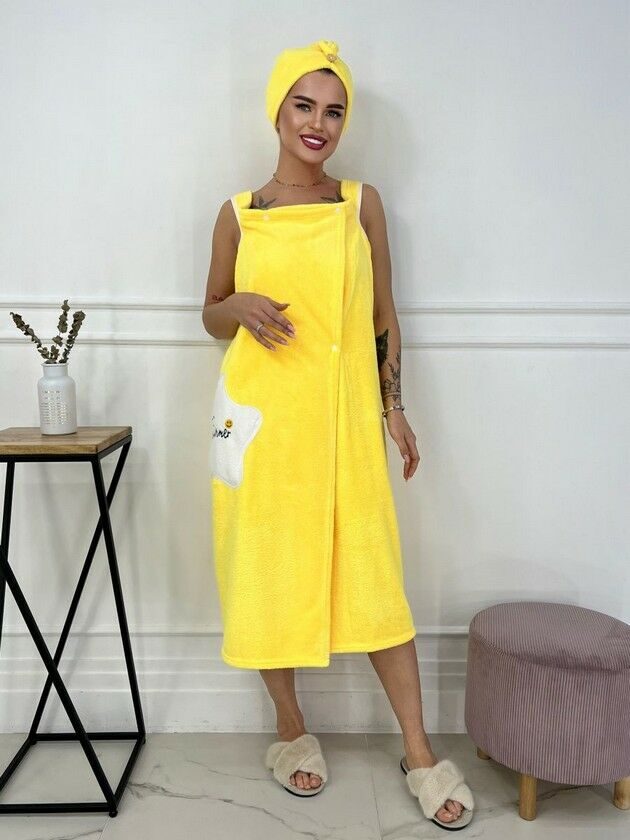 Комплект женский для бани и сауны "Summer"-ЖЕЛТЫЙ микрофибра 2 пр. (парэо + чалма)