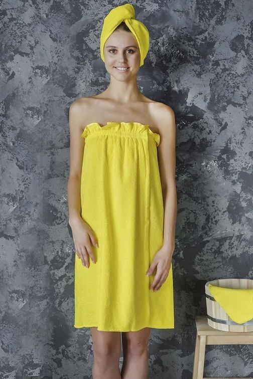 Комплект женский для бани и сауны ЖЕЛТЫЙ махровый 3 пр. (накидка-парэо, чалма, рукавица) хлопок 100%