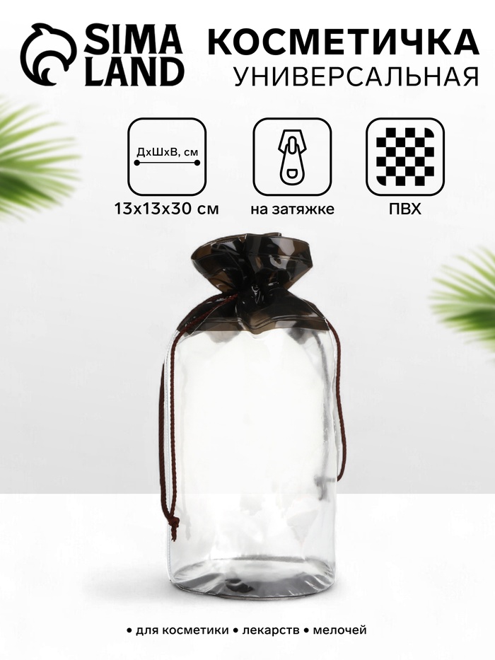 Косметичка для бассейна на шнуре, прозрачная/чёрная