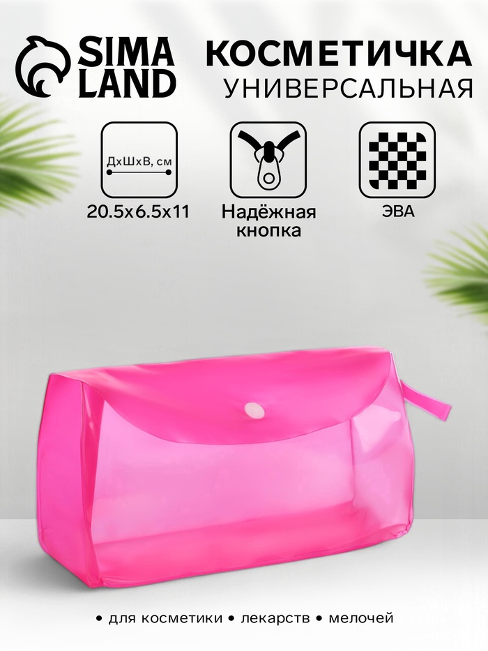 Косметичка на кнопке для бассейна, с ручкой, розовая/прозрачная