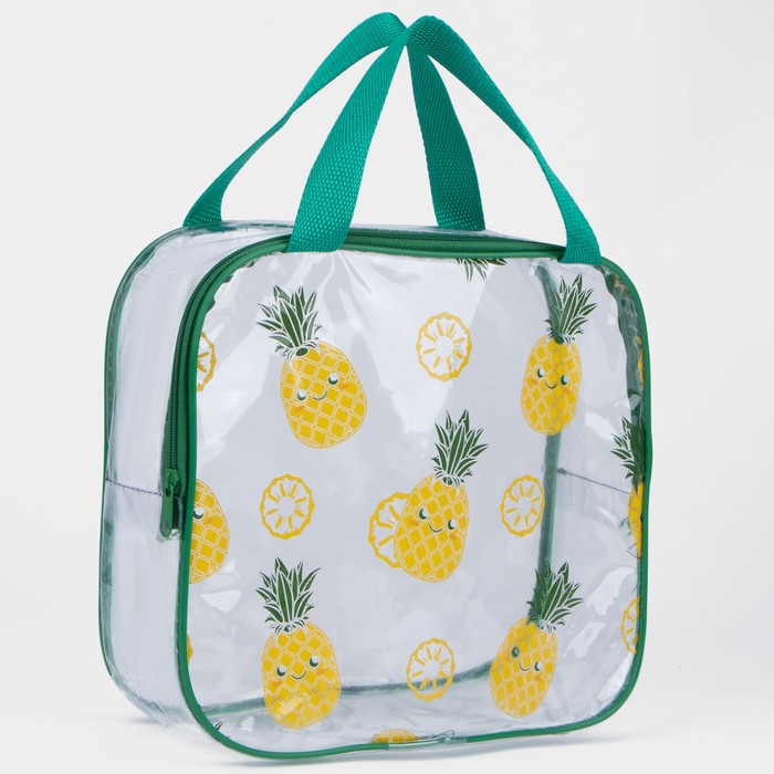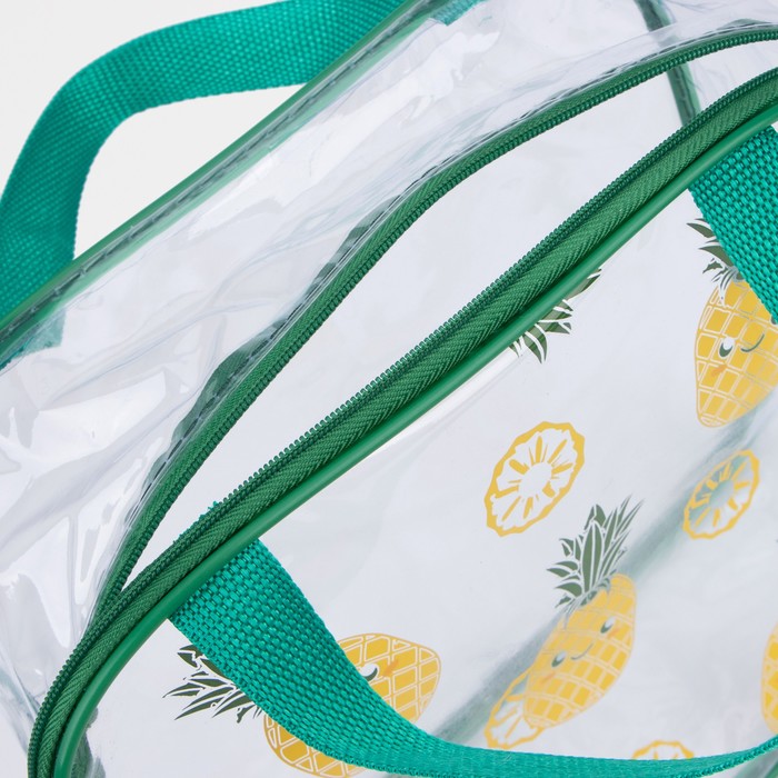 Косметичка на молнии, цвет зелёный/прозрачный