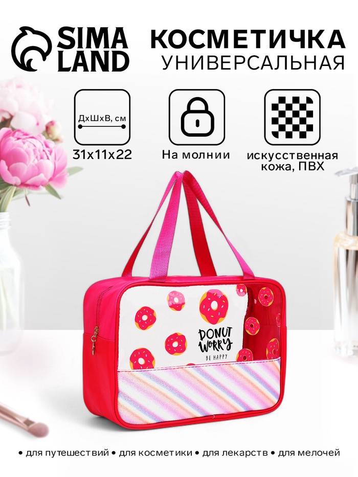 Косметичка на молнии для бассейна, большая, с ручками, с ярким принтом, малиновая