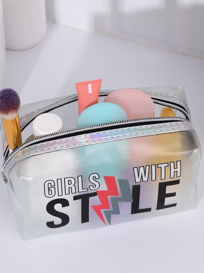 Косметичка на молнии для бассейна, матовая, с надписями, чёрная/красная