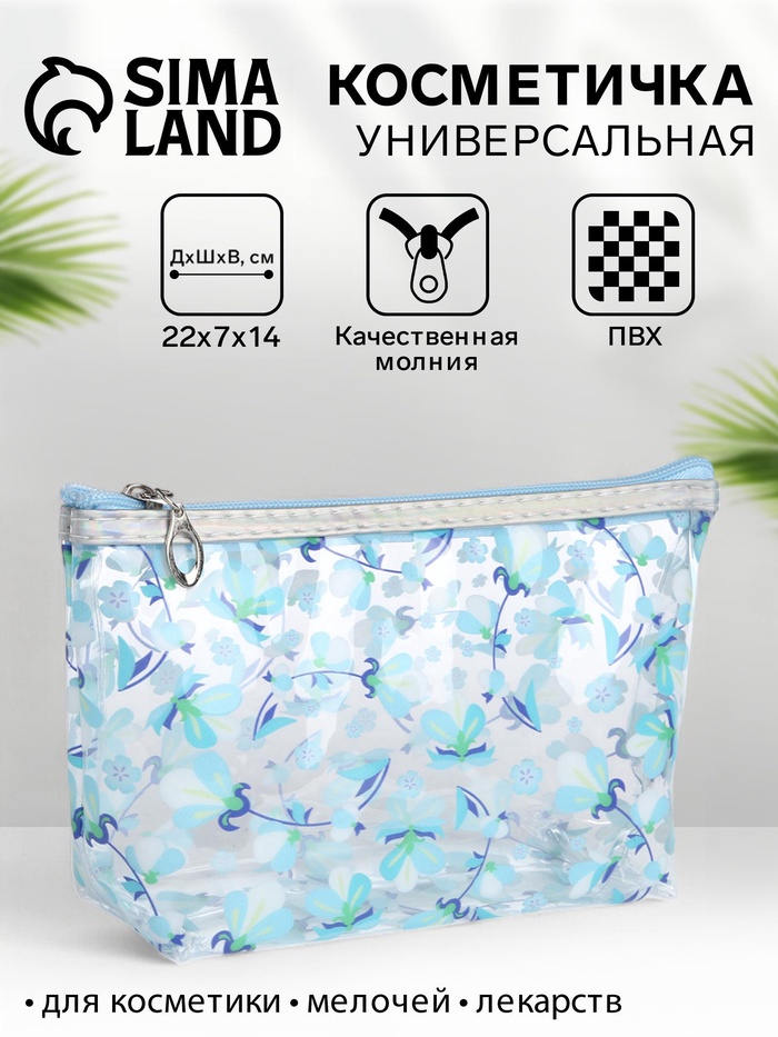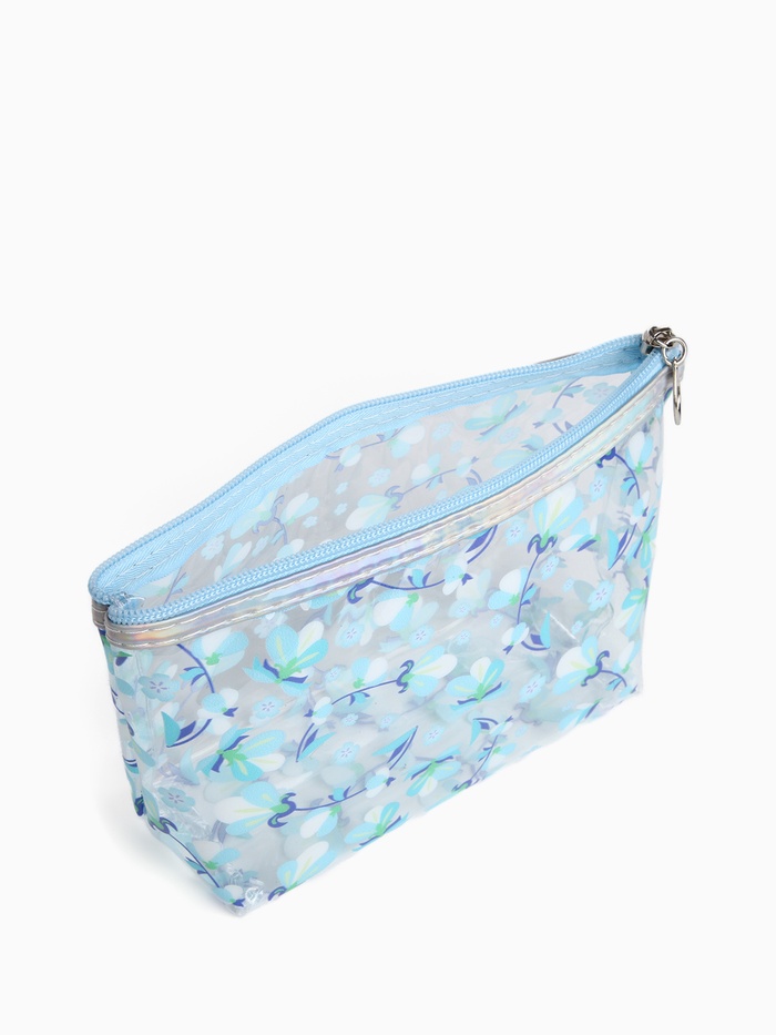 Косметичка на молнии для бассейна, с принтом «Флора», прозрачный/голубой