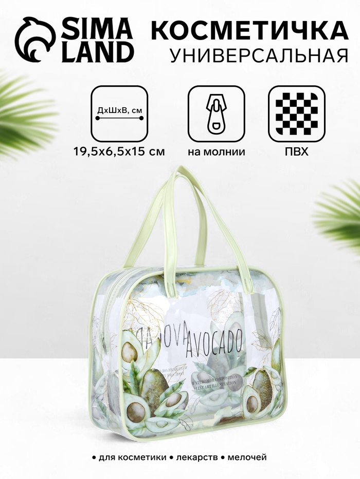 Косметичка-сумка на молнии, с ручками, маленькая, нежно-зелёная
