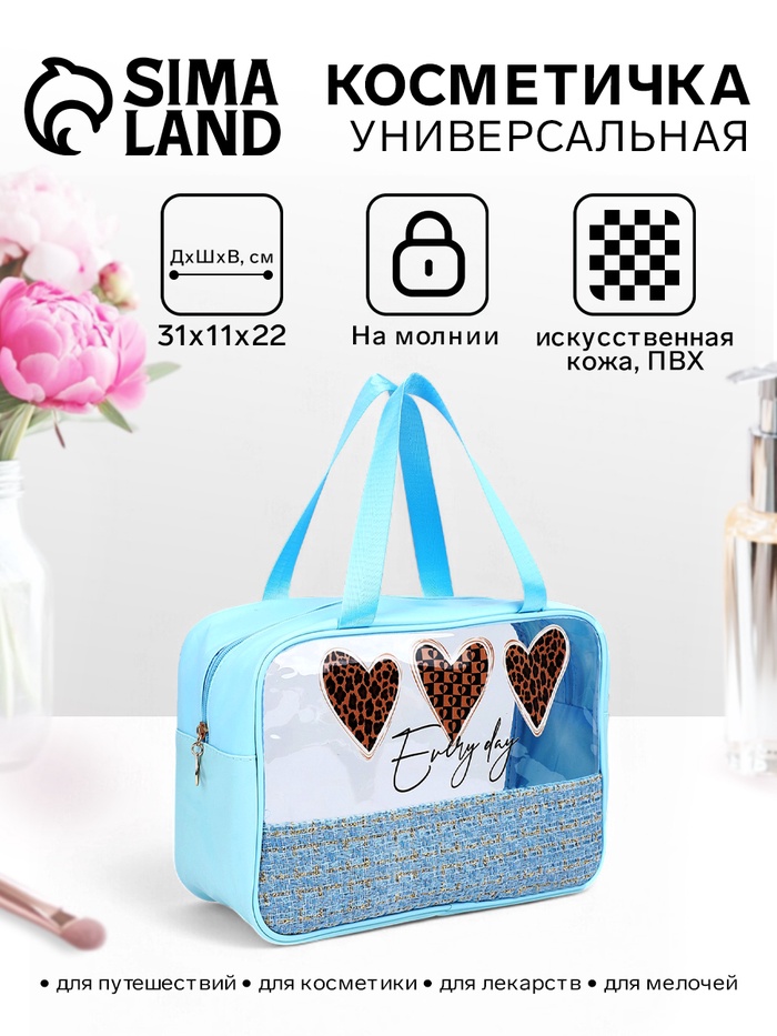 Косметичка-сумка на молнии для бассейна, с ручками, большая, прозрачная/голубая