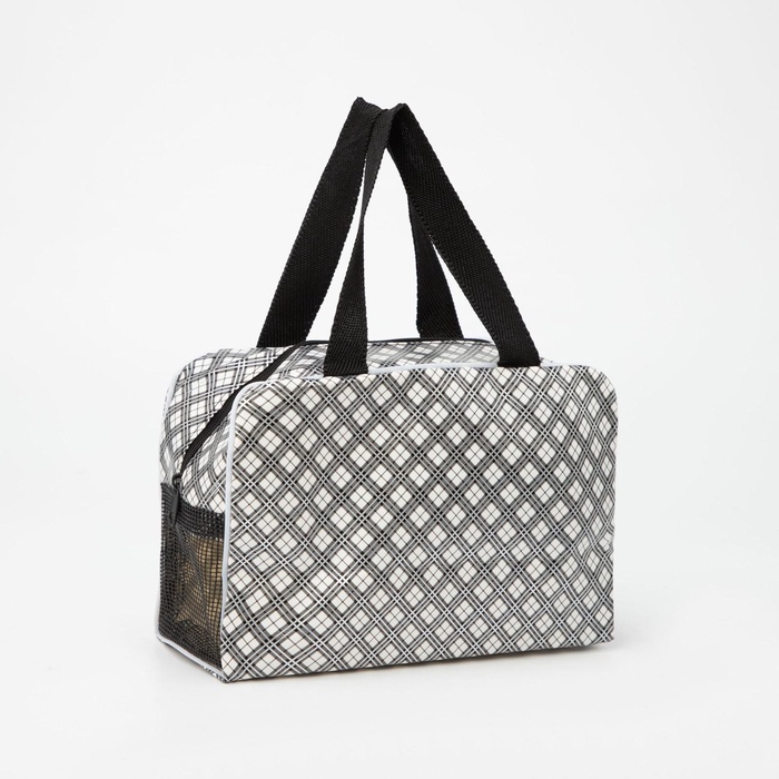 Косметичка-сумка на молнии с сеткой, с ручками, с принтом, молочная