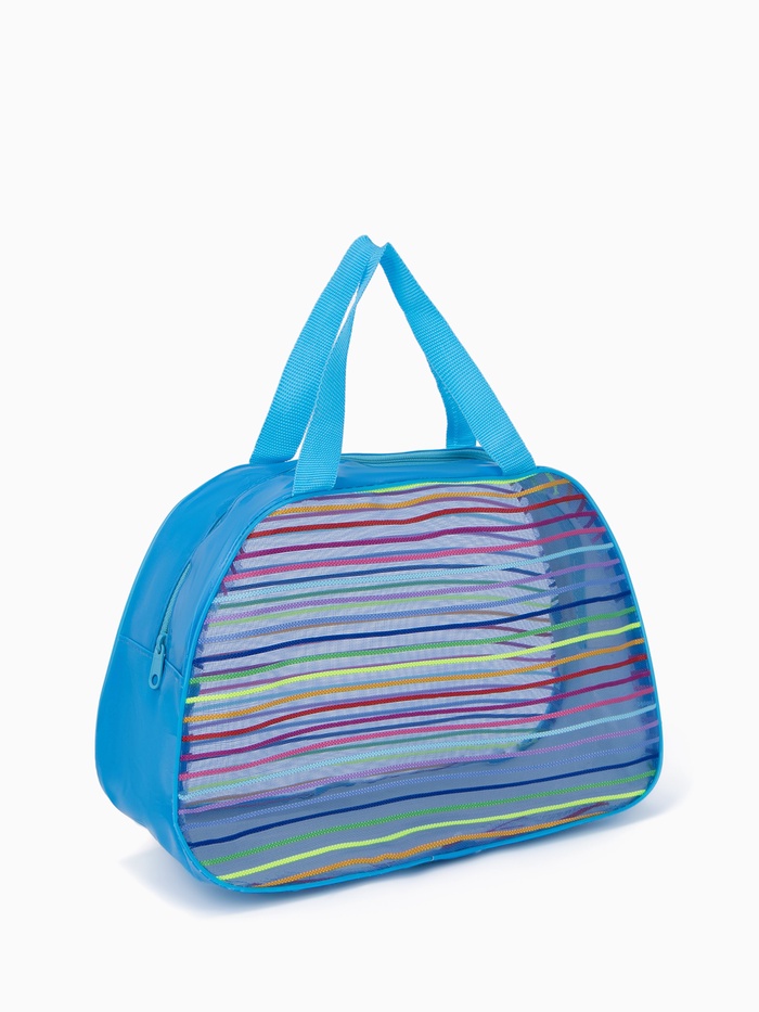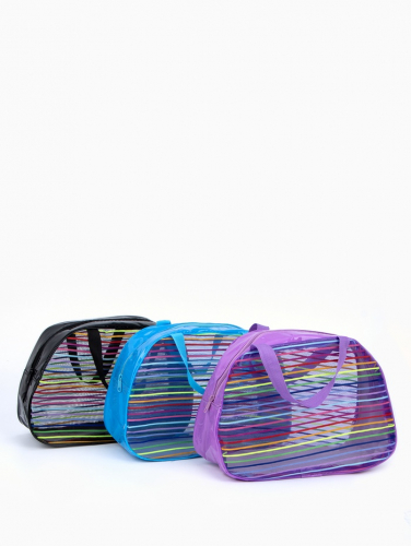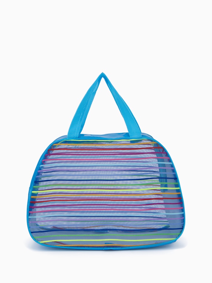 Косметичка-сумка на молнии в сетку, большая, с ручками, в полоску, МИКС