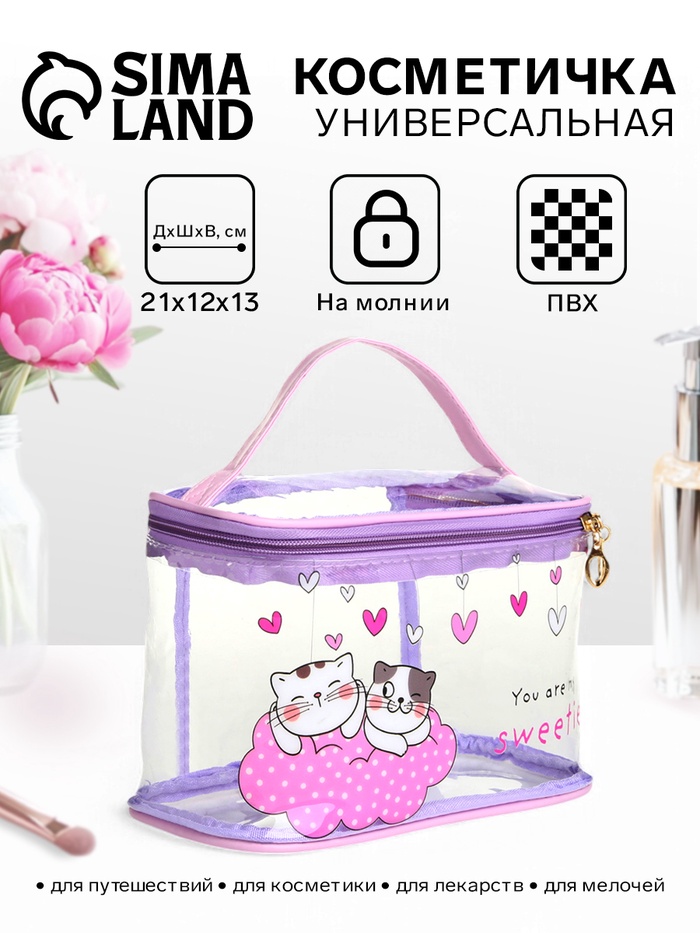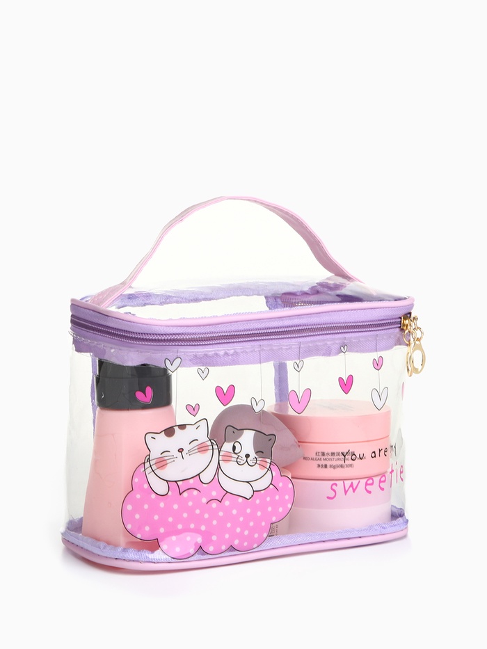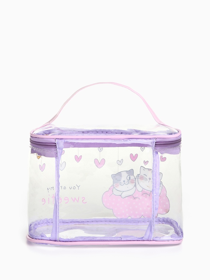 Косметичка-сундучок на молнии для бассейна, с ручкой, с ярким принтом, сиреневая