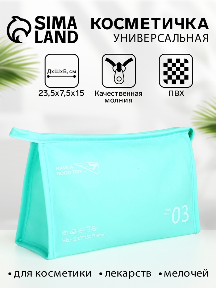 Косметичка треугольная на молнии, с надписями, средний размер, голубая