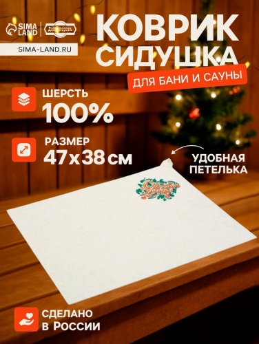 Коврик - сидушка для бани и сауны «С лёгким паром», полиэфир 70%, шерсть 30%, «Добропаровъ»