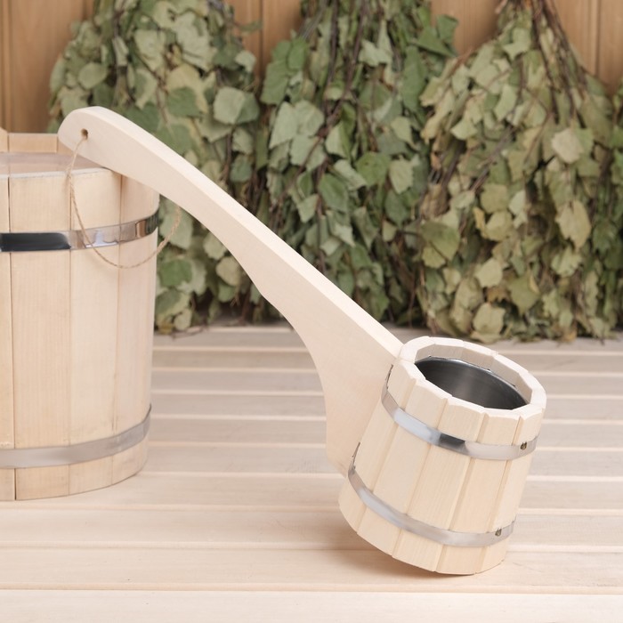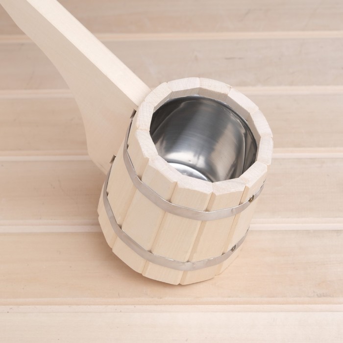 Ковш - черпак для бани и сауны «Емеля», 500 мл, липа, нержавеющая вставка, 42 см, «Добропаровъ»