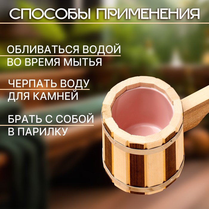Ковш - черпак для бани и сауны, 300 мл, 50 см, деревянный, с пластиковой вставкой, «Добропаровъ»