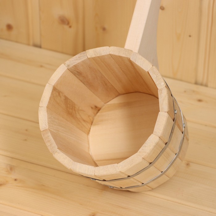 Ковш - черпак для бани и сауны, 1.5 л, липа, нержавеющий обруч, 48 см, «Добропаровъ»