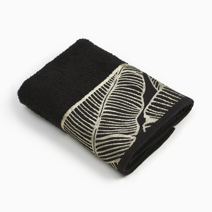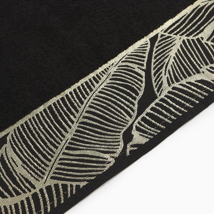 Полотенце махровое Love Life Leaves 70×140 см, чёрное 100%, чёрное