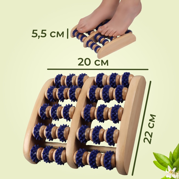 Массажёр для ног «Ножное счастье», 22×20×5.5 см, 5 рядов с шипами, деревянный, синий, бежевый