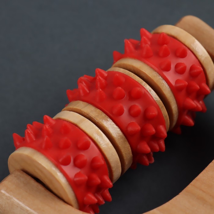 Массажёр - роллер, с шипами, универсальный, деревянный, 14.5×8×2 см, МИКС