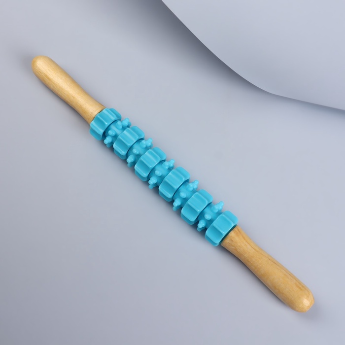 Массажёр «Скалка», универсальный, 37.5×4 см, деревянный, 11 колёс, голубой
