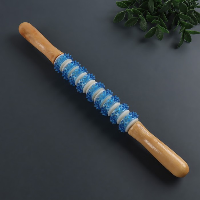 Массажёр «Скалка», универсальный, деревянный, 37.5×4 см, 9 колёс с шипами, МИКС