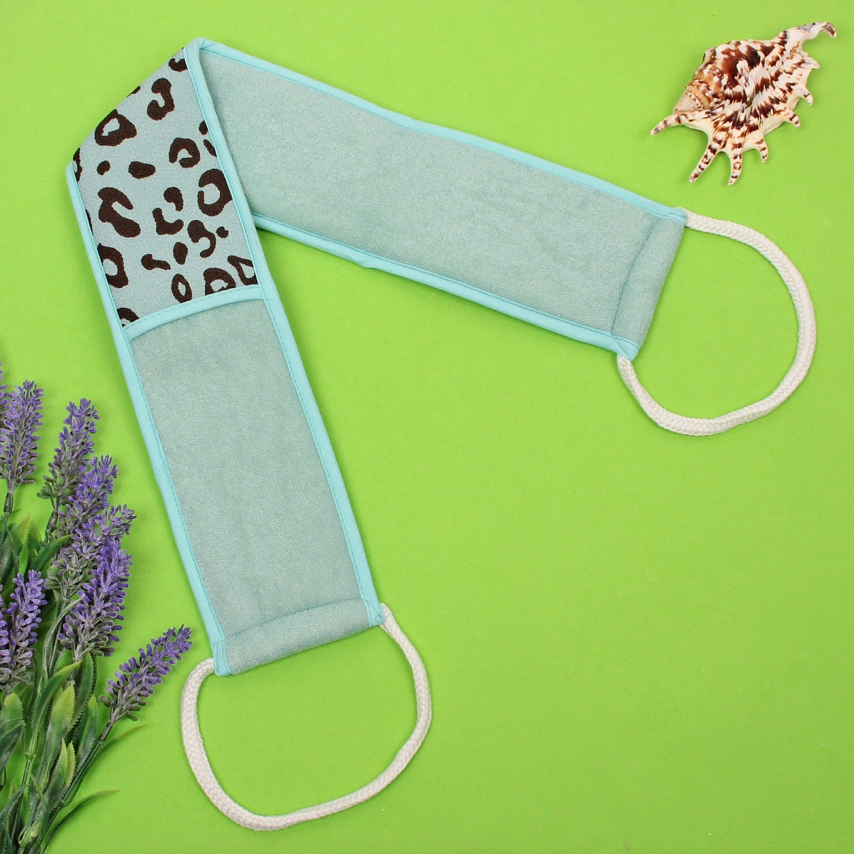 Мочалка для тела "Premium - LEOPARD", цвет голубой, 9*70см (ZIP пакет)