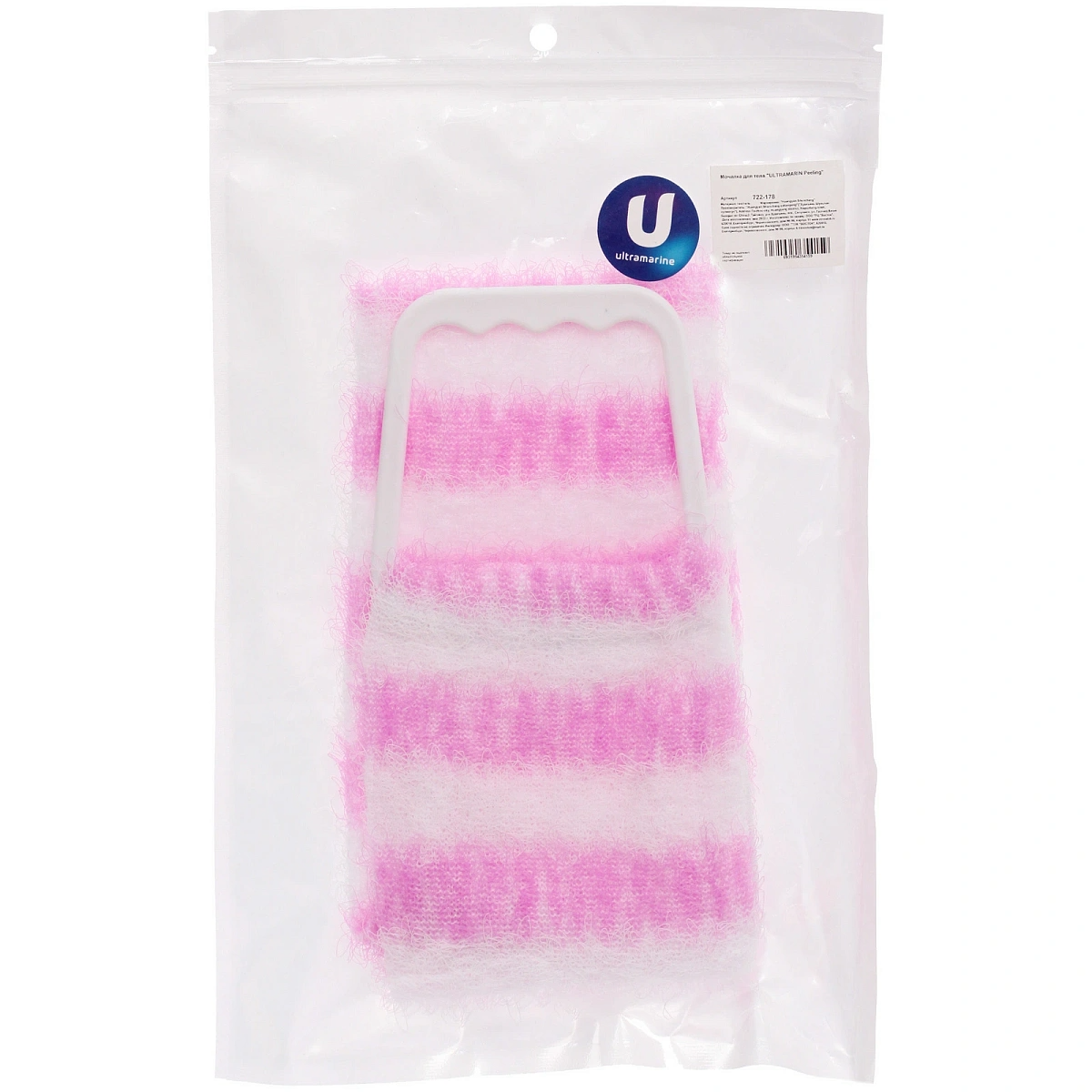 Мочалка для тела "ULTRAMARIN Peeling", жесткая, пластиковые ручки, цвет розовый, 60*11см